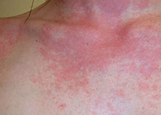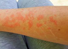 심한 경우에는 발진 부위의 피부가 벗겨지기도 하며 그 부위가 붓거나 두드러기처럼 올라오기도 하고, 심한 경우 피부가 벗겨지거나 딱지, 출혈등이 나타나기도 합니다.