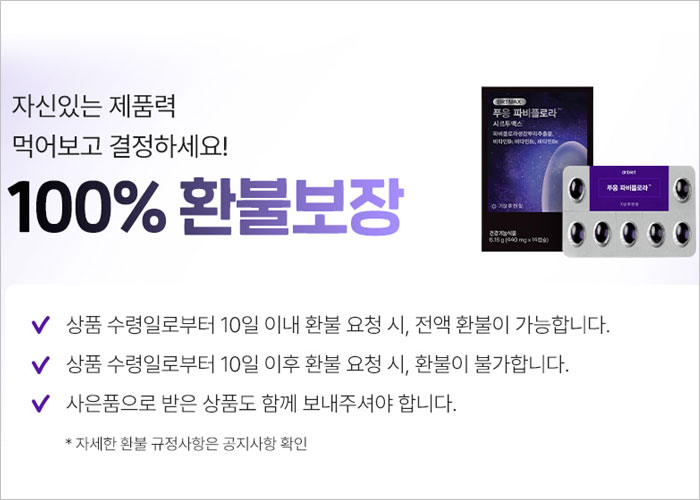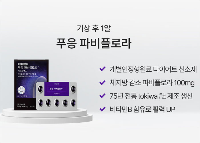 파비플로라 성분이 체지방 감소에 효과적이라고 들었는데, 구하기 힘든 원료라서 구매하기 어려웠습니다. 그런데 평소에 자주 이용하던 푸응에서 신제품으로 파비플로라를 출시했다는 소식을 듣고 너무 기뻐서 바로 주문했어요~~ 40대가 넘어가니 뱃살이 늘어나는 게 심각한데, 파비플로라를 먹고 뱃살이 줄어들면 정말 좋겠네요^^