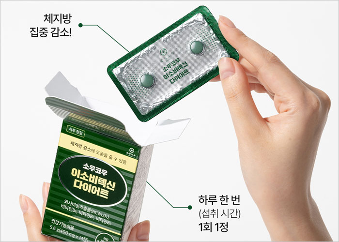 '소우코우 이소비텍신 다이어트는' 와사비잎 추출물(NCWL01)에 들어있는 이소비텍신 성분을 주원료로 하여 만들어진 신개념 다이어트 보조제입니다.