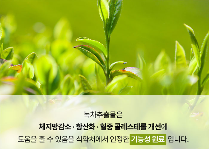- 녹차 추출물(카테킨): 체지방 감소와 항산화 작용, 혈중 콜레스테롤 개선에 기여할 수 있습니다.