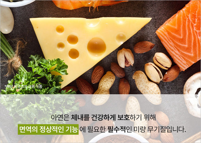 - 아연: 정상적인 면역 기능과 세포 분열에 필수적인 미네랄입니다.