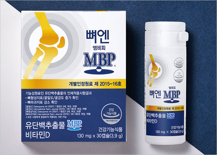 뼈엔 엠비피 MBP는 우유에서 추출한 특별한 단백질 성분인 MBP(Milk Basic Protein)를 주성분으로 만든 건강기능식품이에요.
