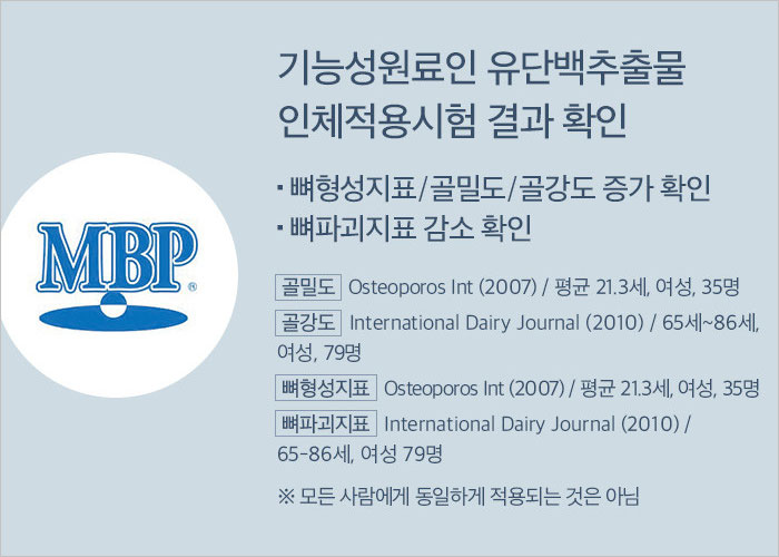 MBP는 우유속에 단 0.005%만 존재해서 우유 200ml 120을 마셔야만 하루 권장량을 겨우 채울수 있을 정도로 귀한 단백질인데요. 뼈를 튼튼하게 만들고 골밀도를 높이는 데 도움을 주는 성분으로 알려져 있어요.