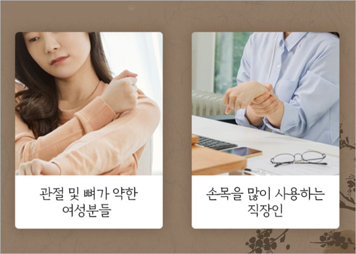 구절초와 당귀 같은 한약재가 포함되어 있어 혈액순환을 개선기 키고 몸을 체온을 올려주어 관절 주변부의 혈액 순환을 촉진하여 통증 완화에 도움을 줄 수 있어요.