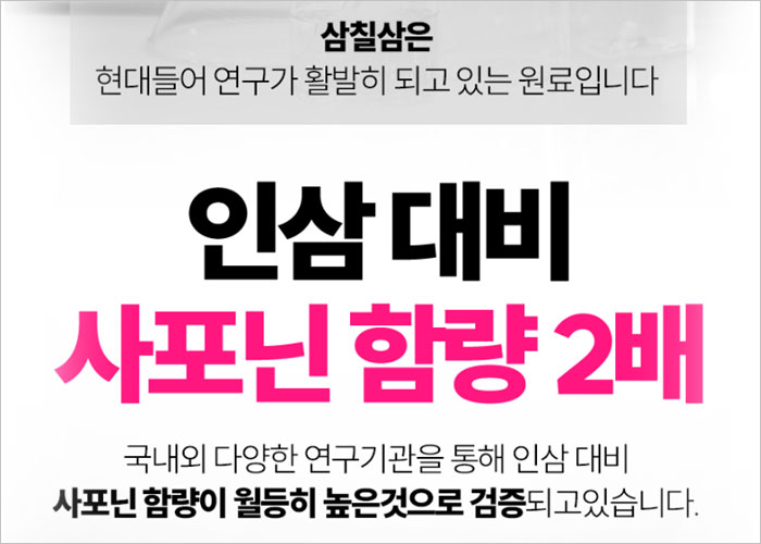 삼칠삼은 귀한 원료로 1kg당 250만원에 육박할정도로 초고가를 자랑하는데요 이런 귀한 삼칠삼이 10배 농축되어 들어있는 원료를 사용한 풀업 373은 높은 사포닌 함량으로 인해 지친 남성들의 활력을 되찾는데 도움을 줄수 있습니다.
