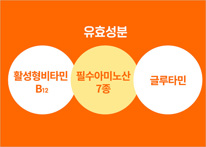 활성 비타민 B12와 필수 아미노산, 글루타민등의 다양한 영양소가 면역 세포 활성화를 돕고, 외부 침입자로부터 몸을 보호하여 면역력 향상을 통해 감기, 독감 등 각종 질병 예방에 도움을 줍니다.