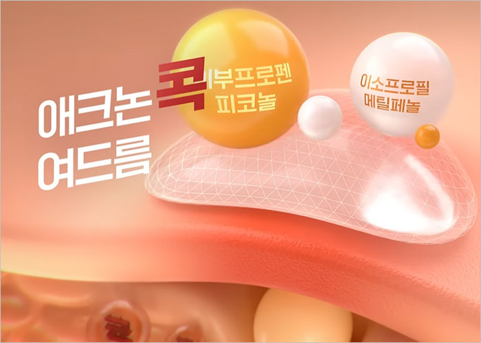 여드름은 염증 반응을 동반하는 질환이기 때문에, 이부프로펜피코놀은 붉고 부어오른 여드름을 가라앉히고 진정시키는 데 효과적입니다. 여드름으로 인한 붉음증, 부기, 통증을 완화시키고 여드름균의 지방분해효소 생성을 억제하여 여드름이 악화 되는것을 막습니다.