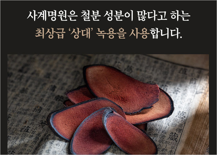 또한 뇌세포 손상을 막고 재생을 촉진시키는 녹용, 내이와 중이의 기능을 활성화하여 청력 보호해 주는 산수유등 사계명원만의 특허성분이 뇌와 귀건강을 종합적으로 관리할 수 있게 해 주며, 특히 이명으로 고생하는 분들에게 큰 도움이 될 수 있는 제품입니다.