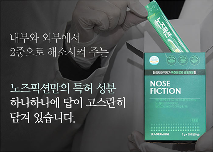 이런 분들에게 조금이나마 삶의 변화가 시작될 수 있도록 도와주는 제품이 바로 리더뮨 노즈픽션입니다. 리더뮨 노즈픽션은 최근 많은 사람들 사이에서 주목받고 있는 비염 개선 영양제로 비염으로 고생하는 분들에게는 특히 도움이 될 수 있는 제품입니다. 오늘은 노즈픽션의 다양한 효능과 함께 가격, 후기, 부작용 등에 대해 자세히 알아보겠습니다.