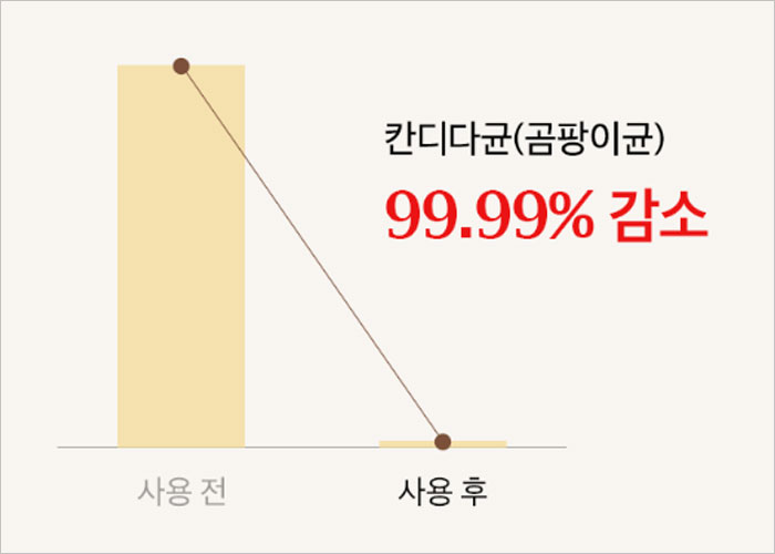 아너스플리는 칸디다균을 포함한 유해균 개선율이 99.99%에 달합니다. 이는 항문 부위의 불쾌한 냄새와 가려움을 유발하는 유해균을 효과적으로 제거하는 데 도움을 줍니다.