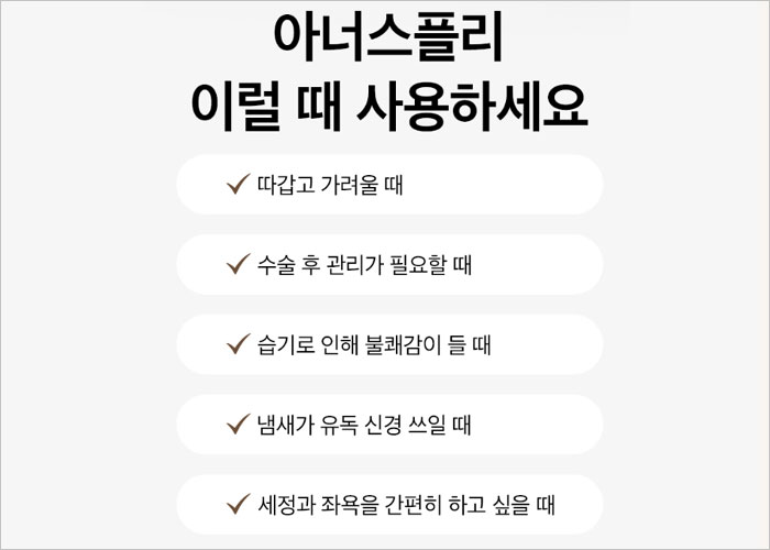 이와 같은 상황에서 아너스플리를 사용하면 더욱 건강하고 쾌적한 일상을 즐길 수 있습니다.