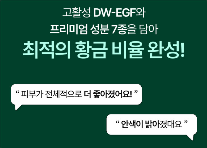 또한 EGF 외에 글루타치온, 나이아신아마이드, 비타민C 유도체, 히알루론산들이 함께 들어있어 기미의 원인을 차단하고, 피부 바탕을 건강하게 회복시켜주는 시너지 효과를 만들어 낸다고 합니다.