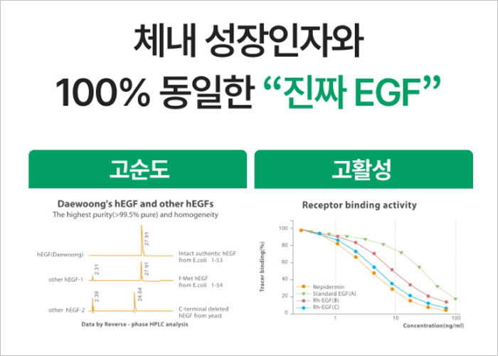 EGF는 'Epidermal Growth Factor'의 줄임말로, 피부의 상피세포 재생을 도와주는 단백질입니다. 쉽게 말해 손상된 피부를 빠르게 회복시키고, 새로운 피부세포 생성을 도와주는 역할을 하죠. 이지듀 기미앰플에는 대웅제약의 특허받은 순도 99% EGF 성분이 들어 있어, 기미나 잡티처럼 피부 깊은 층에 자리 잡은 색소에도 도움을 줄 수 있다고 해요.