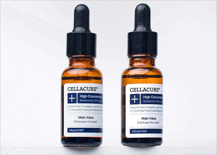- 그런 다음, 관리하고 싶은 부위에 셀라큐어를 1~2방울 정도 떨어뜨립니다. 바르기 전엔 세럼을 가볍게 흔들어 주셔도 좋아요.
