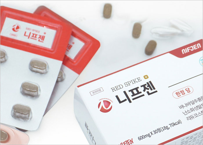 니프젠 스파이크는 식전 30분, 하루 한 알이면 충분합니다. 작은 정제 형태라 물과 함께 편하게 삼키실 수 있어요.