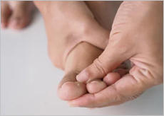 - 가장자리가 갈라지고 부스러짐 신발을 신으면 압박감과 통증 발생