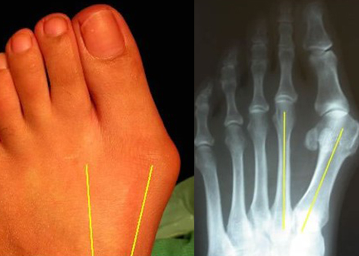 발가락의 형태적인 변형만으로 진단가능하나, 정확한 진단을 위해 방사선 촬영으로 관절 구조와 뼈의 상태를 확인후 정량화 하여 평가합니다.